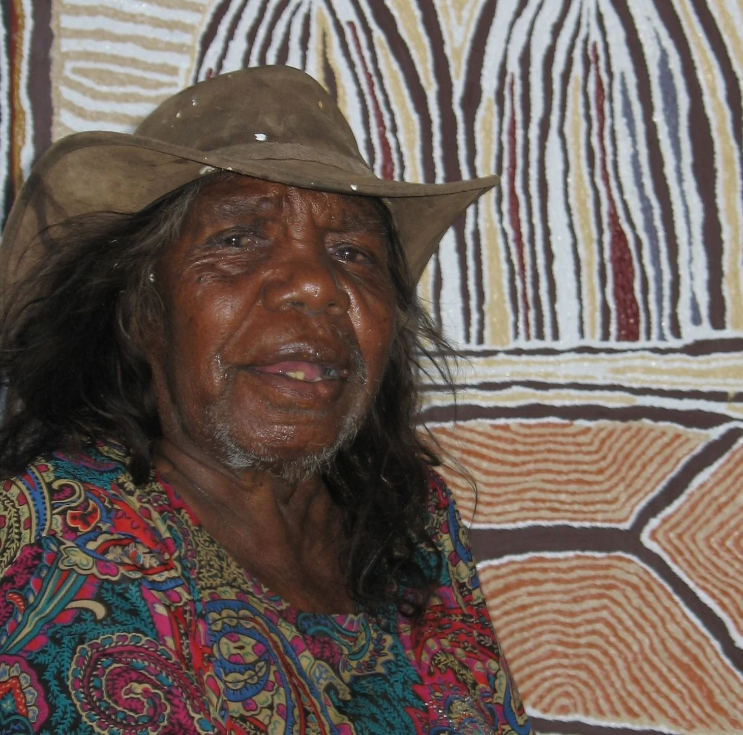 Linda Syddick Napaltjarri was born at Lake Mackay, near the border between W.A and N.T, in 1937 (dec 2021). Her father was a Pitjantjatjara man, Rintje Tjungurrayi, her mother was a Pintupi woman, Wanala Nangala. At birth, she was given the names Tjunkiya (from mother), Wukula (from grandmother) and Napaltjarri (her kinship name). Until she walked to Haasts Bluff Lutheran Mission in 1945, she grew up surrounded by the traditional hunter-gatherer lifestyle of the Pintupi people of the Gibson Desert.
